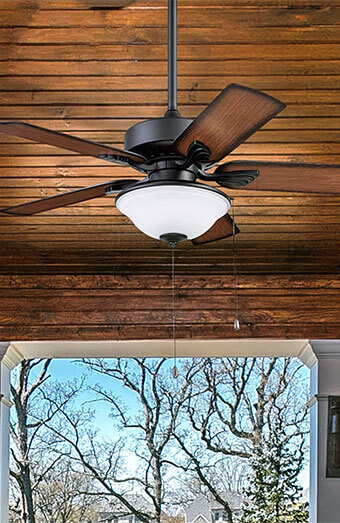 Weather-resistant ceiling fan installation for alfresco areas, patios, and verandas, using models specifically rated for outdoor conditions.