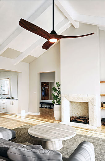 Energy-efficient DC motor ceiling fan installation, providing quieter operation and significant power savings compared to traditional AC motors.